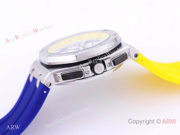 316L Stainless Steel Case Blue Textured Dial Yellow & Blue Rubber Bracelet