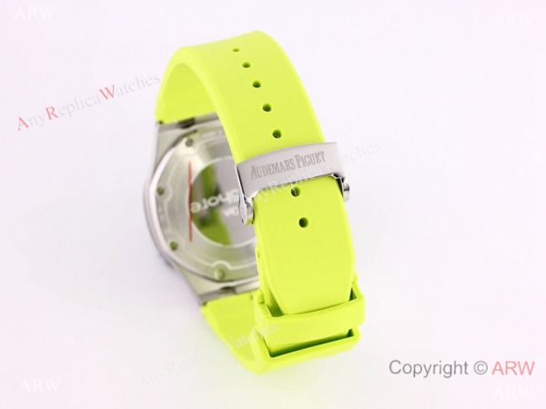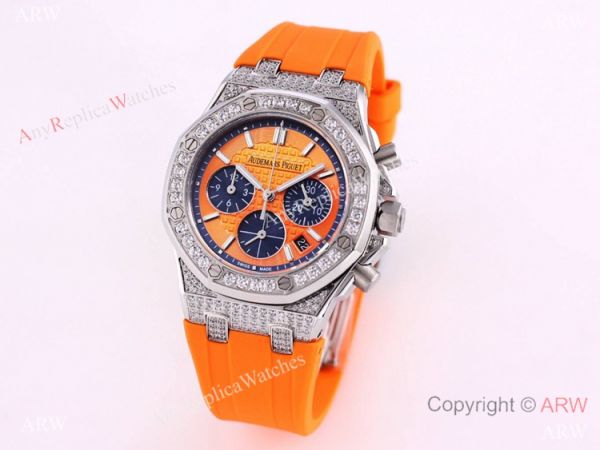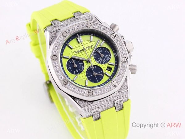 316L Stainless Steel Case Inlaid with Diamond Yellow Textured Dial Yellow Rubber Bracelet Replica Iced Out Audemar watch