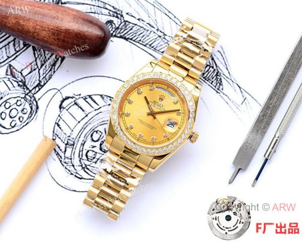 Copy Rolex Day-date President All Gold Diamond set Watch 40mm