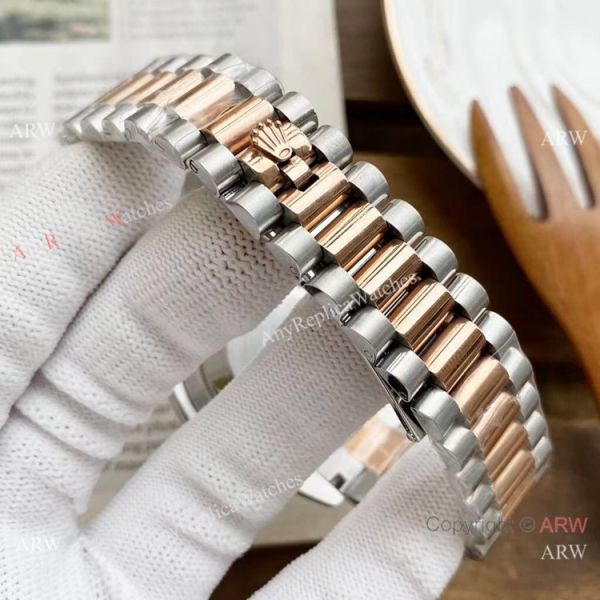 Rolex Two Tone Rose Gold case of this Rolex Day Date Watch