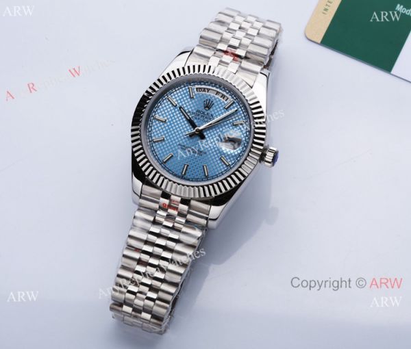 Swiss Quality Replica Rolex Daydate Citizen 40mm Watch Blue Plaid motif