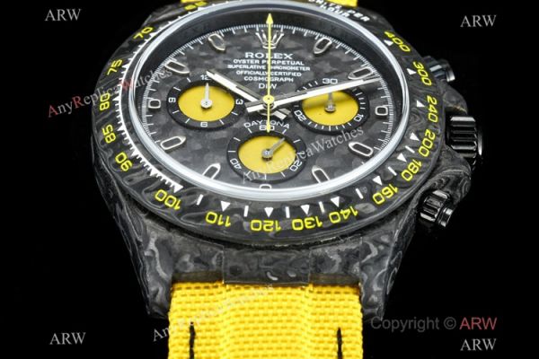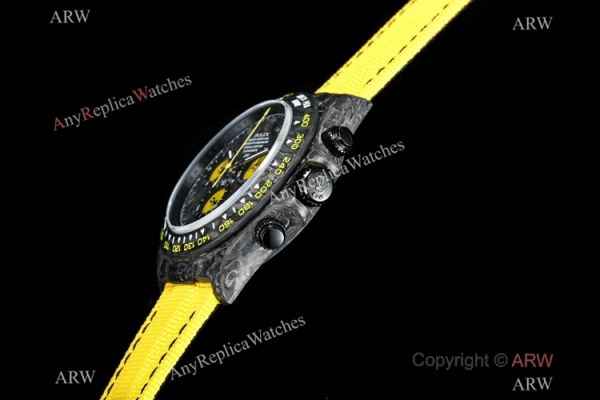 TW Factory Rolex Diw Carbon Daytona Swiss 7750 Copy Watch Yellow Fabric Leather Band