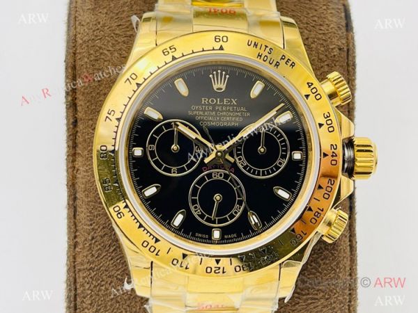 Swiss Grade Copy Rolex Daytona 40mm Gold Black VR 7750 Chrono Watch