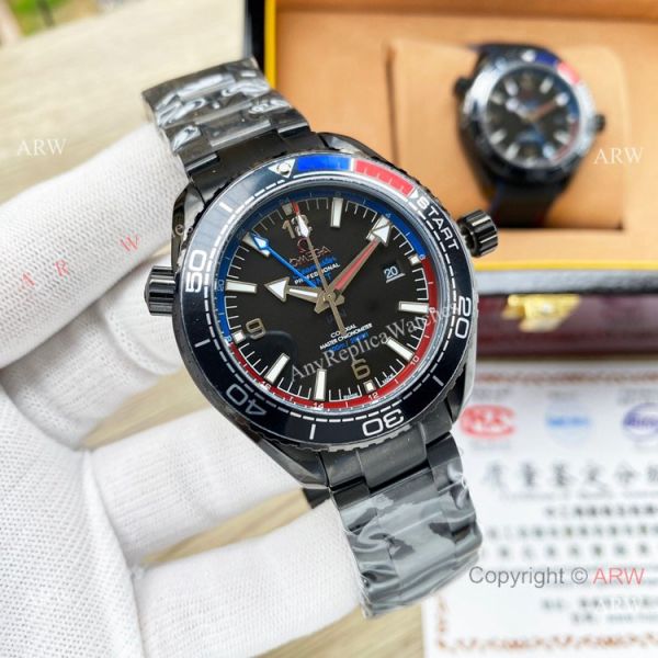 Replica Omega Planet Ocean Deep GMT Watch Solid Black 43mm