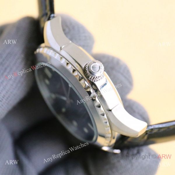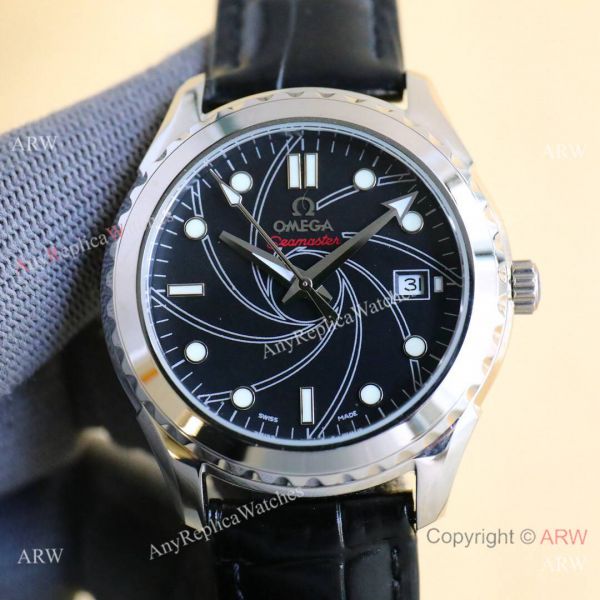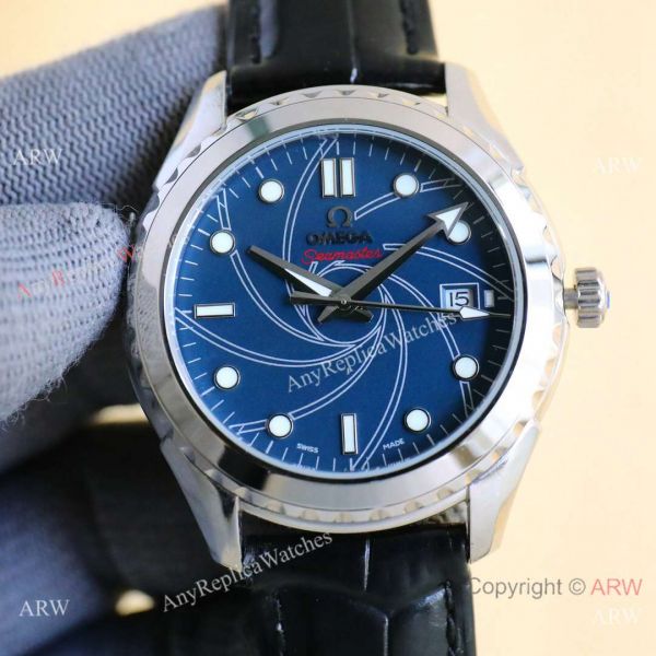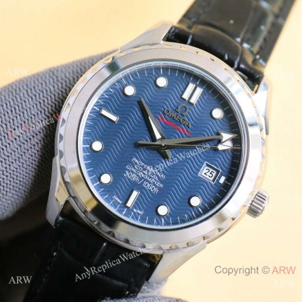 316L Stainless Steel Case, Blue Wave Face and Black Leather Strap Omega Copy Watch
