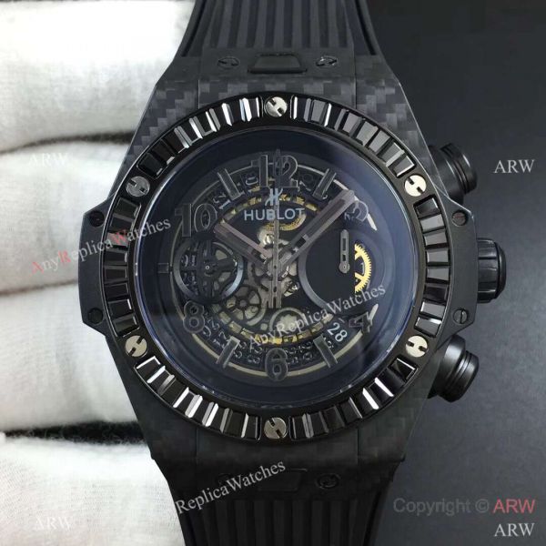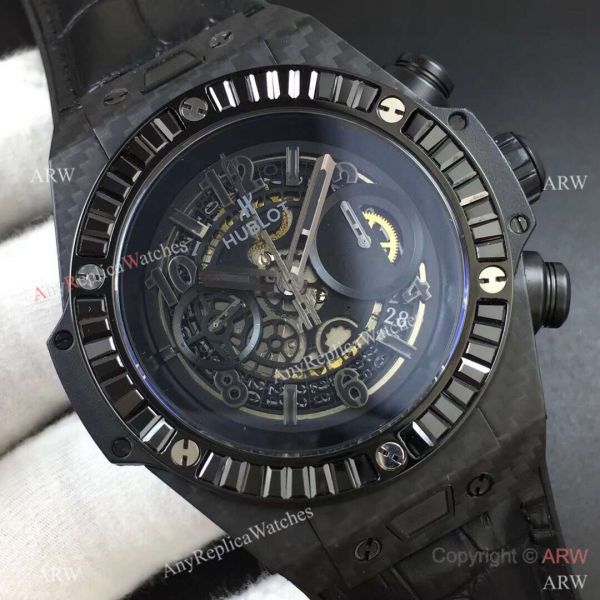 Swiss Grade Hublot Big Bang Unico King 45.5 Carbon with Baguettes Black Leather Strap-Best Replica Hublot Watches