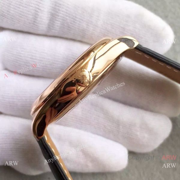 Rose Gold Case White Dial Black Leather Watch Bracelet