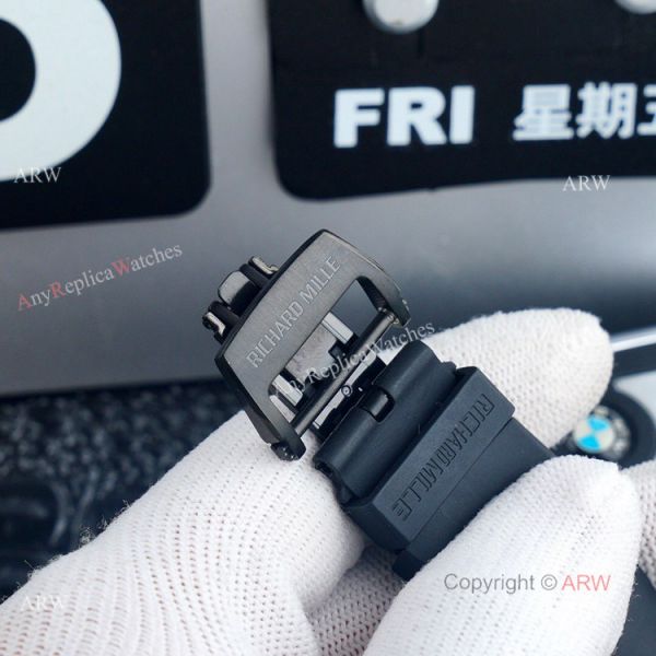 Watch Band: Richard Mille Black Rubber Strap with Deployment buckle