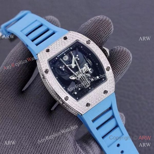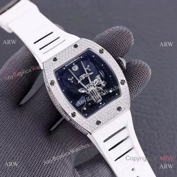 Stainless Steel Diamond watch Case Coat Diamond face Red Rubber Band Richard Mille Men Watches