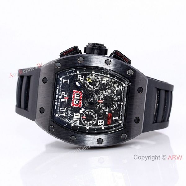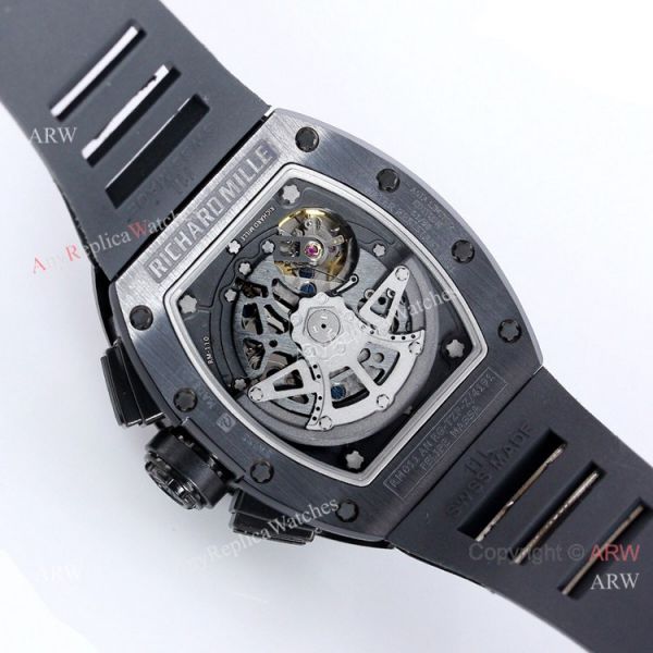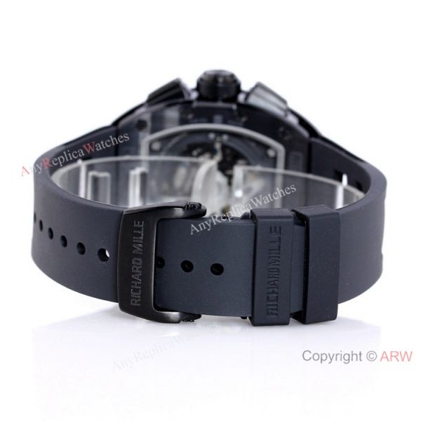 Matt Black DLC titanium case and bezel - Richard Mille Skeleton Dial - Richard Mille Black Rubber Watch Band Richard Mille Watch Replica AAA Quality