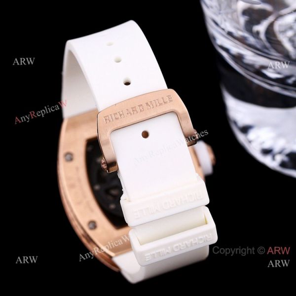 Rose Gold Steel Case and Rose Gold Bezel - White Rubber Strap - Richard Mille Richard Mille Watch