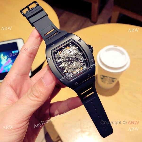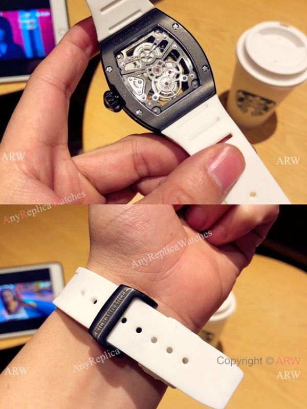 Black Steel Case White Rubber Strap Skeleton Face Richard Mille Knock off