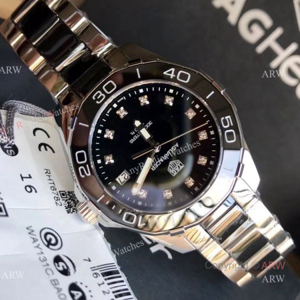 Stainless Steel Ceramic Case Black Diamond Dial Black Ceramic Bezel Replica Tag Heuer Watches