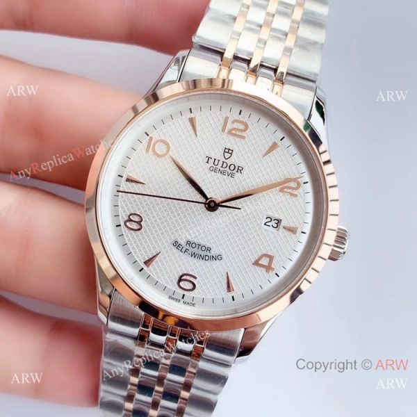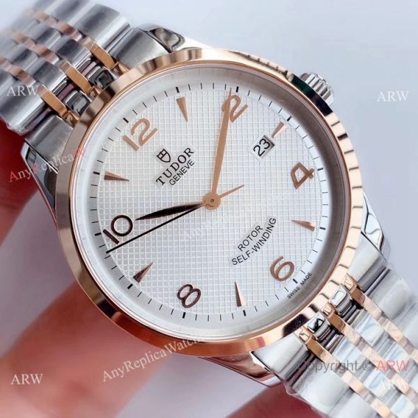 Swiss Grade 1 Tudor Geneve Rotor Self Winding Watch Two Tone Rose Gold White Face