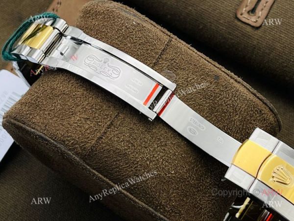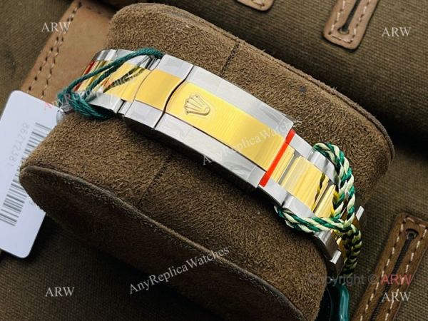 Watch Band: Best Quality Stainless Steel and Gold Rolex watch bracelet with hidden clasp displaying the Rolex logo. easy adjustable screw links.