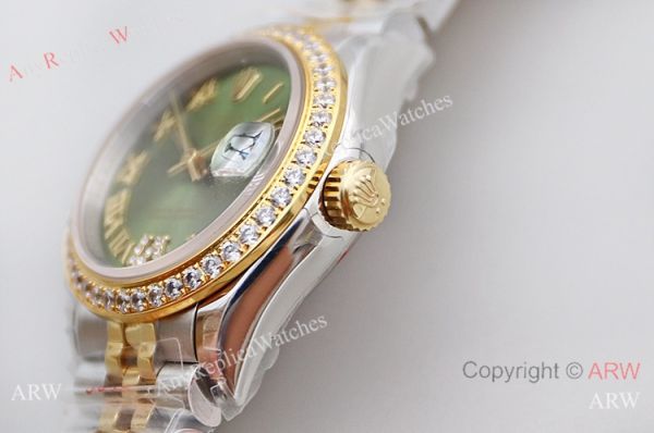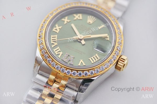(TWS) Swiss Faux Rolex Datejust 28 Olive Green watch Inlaid with Diamond