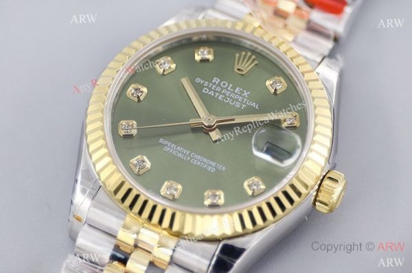 Swiss Grade Rolex Datejust Two Tone Green 31 mm watch in TWF 2824 Movement