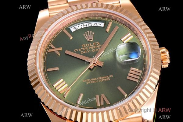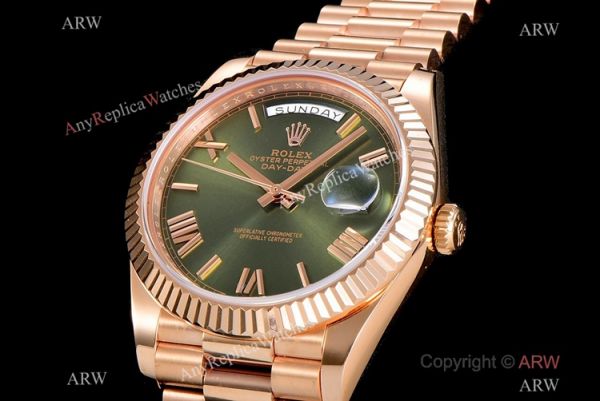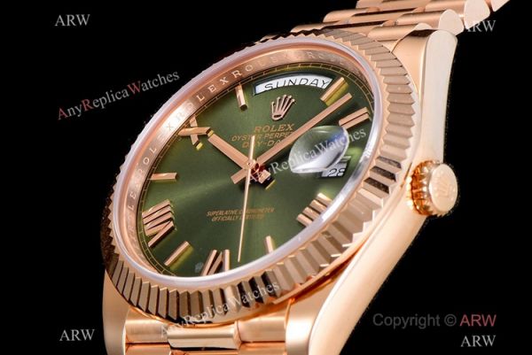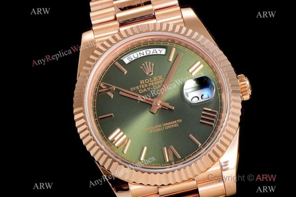 (GM) Swiss Replica Rolex Day-Date 40mm Watch Olive Green Dial Rose Gold