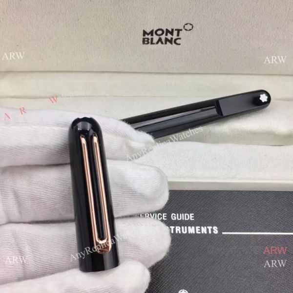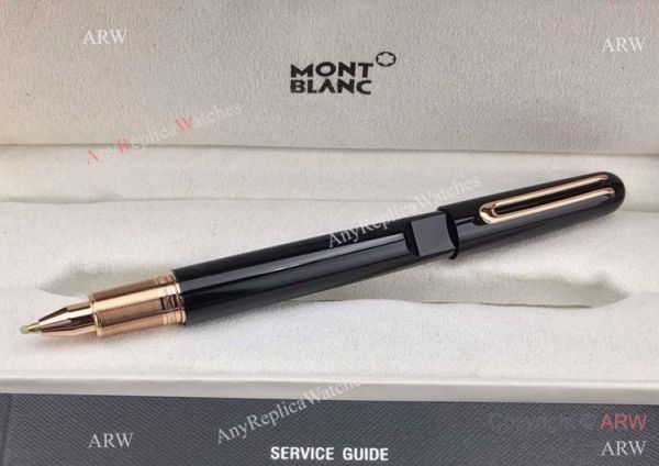 Black Resin Barrel and Rose Gold Clip Replica Mont Blanc Pens For Sale