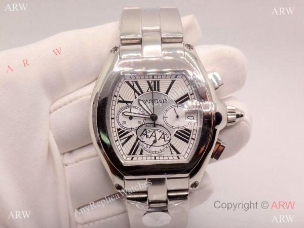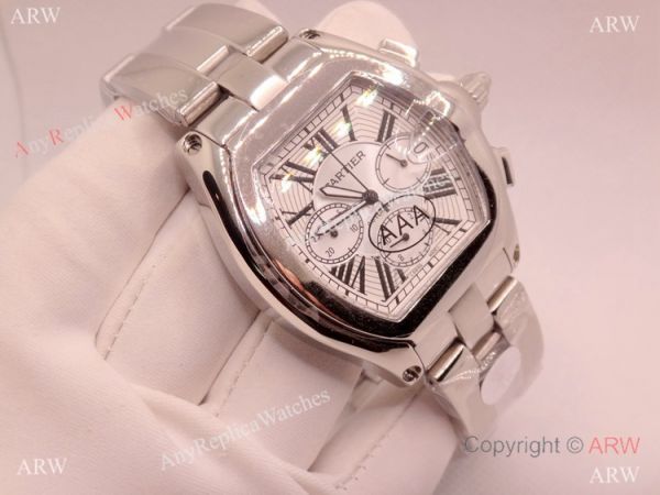 Replica Cartier Roadster Stainless Steel White Chronograph XL Men's Watch Swiss Grade Case