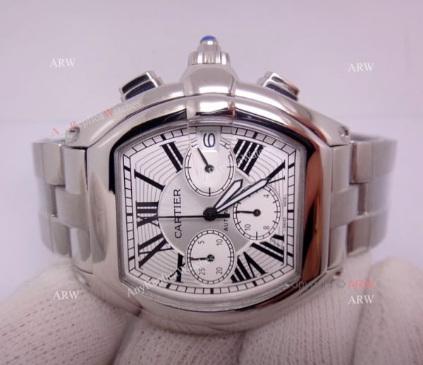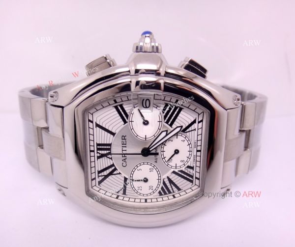 Replica Cartier Roadster Stainless Steel White Chronograph XL Men's Watch Swiss Grade Case