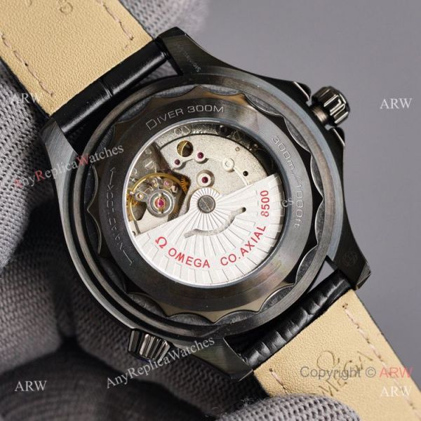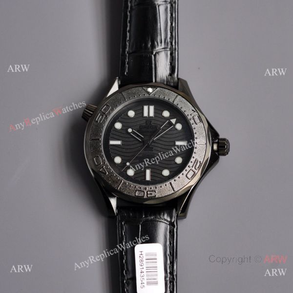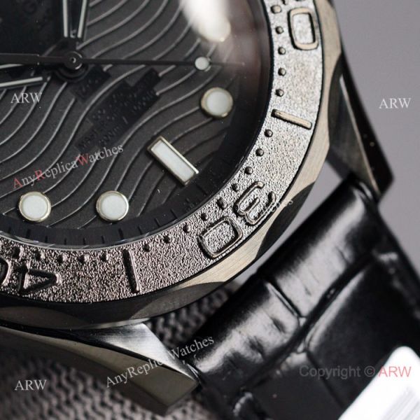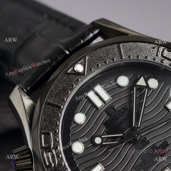 Swiss Omega Seamaster Diver 300m Black Black Watch Leather Strap
