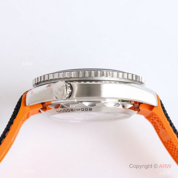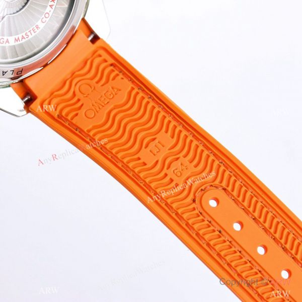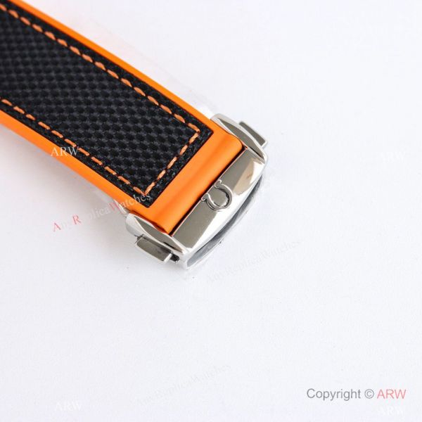 Watchband: High Quality Gray/Orange Gummy Strap watch bracelet. Buckle with Proper Omega Engraving.