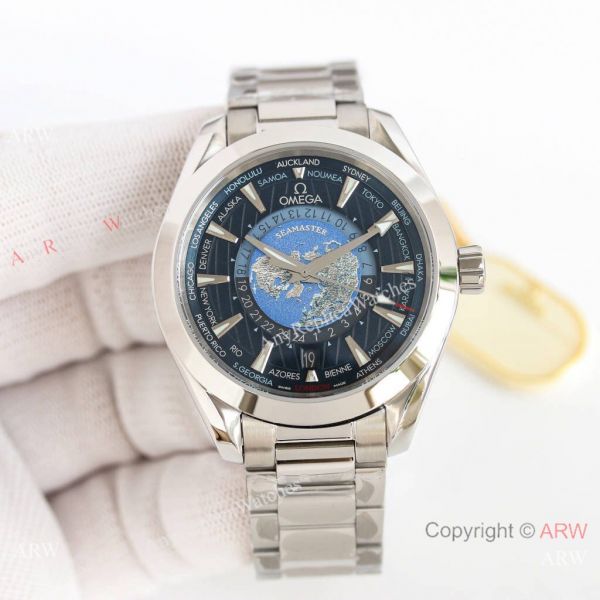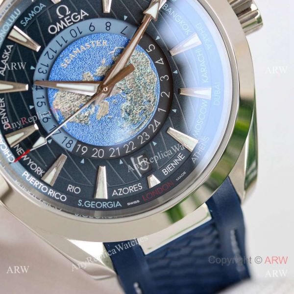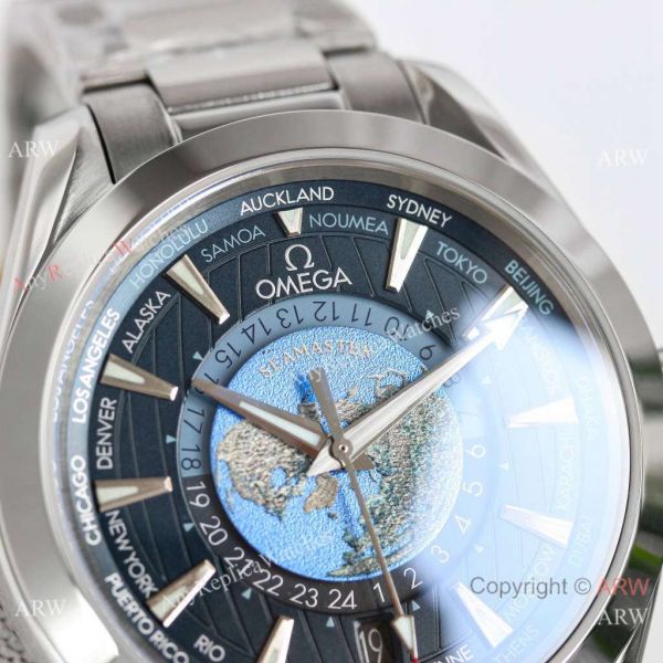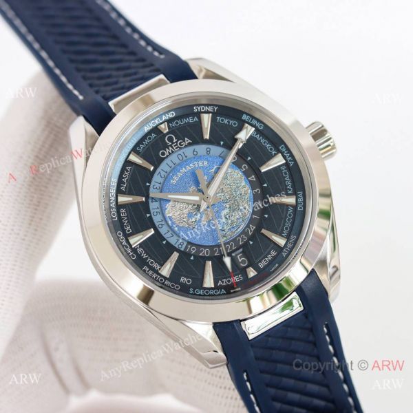 Omega Seamaster Aqua Terra Worldtimer Replica Watch with Super-LumiNova. Best Omega Watches For Men.