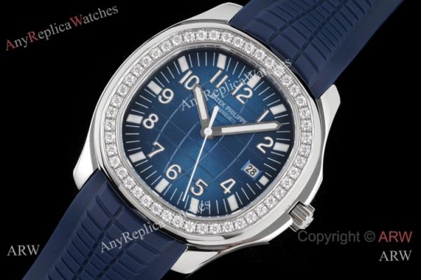 904L Stainless Steel Case Blue Face Blue Rubber Strap Diamond Bezel