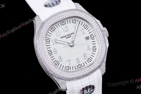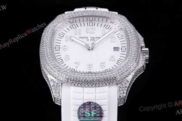 SF Factory Replica Patek Philippe Aquanaut Diamond White Rubber Strap 40mm Watch