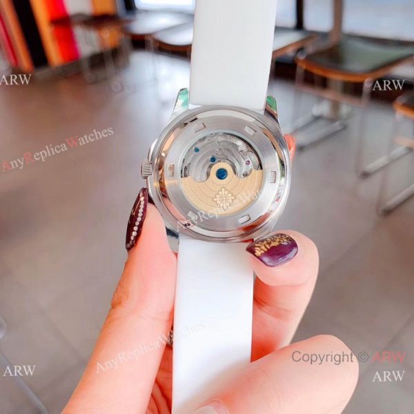 Clone Patek Philippe Aquanaut Tourbillon Women Watches Rose Gold Diamond Bezel