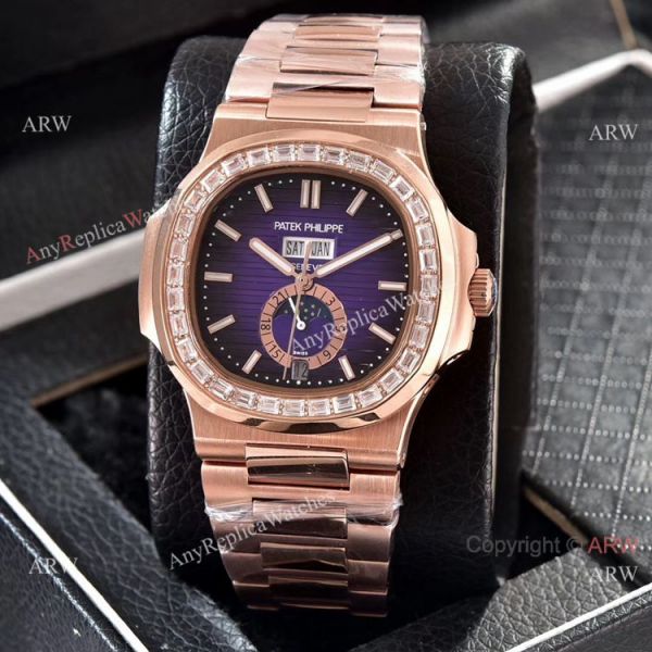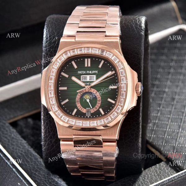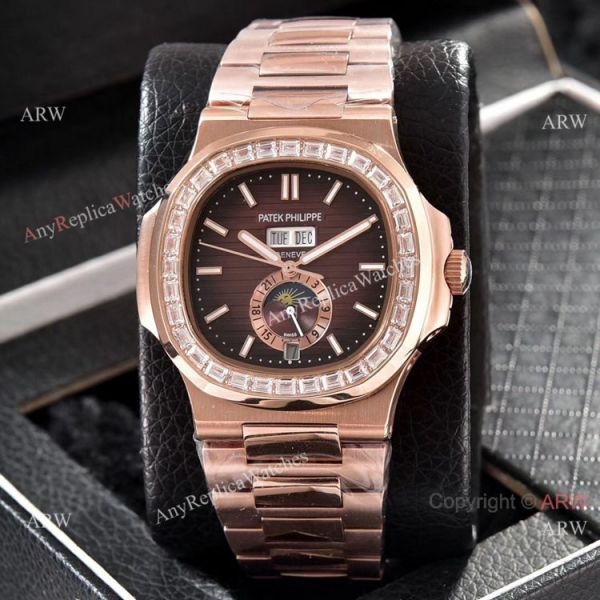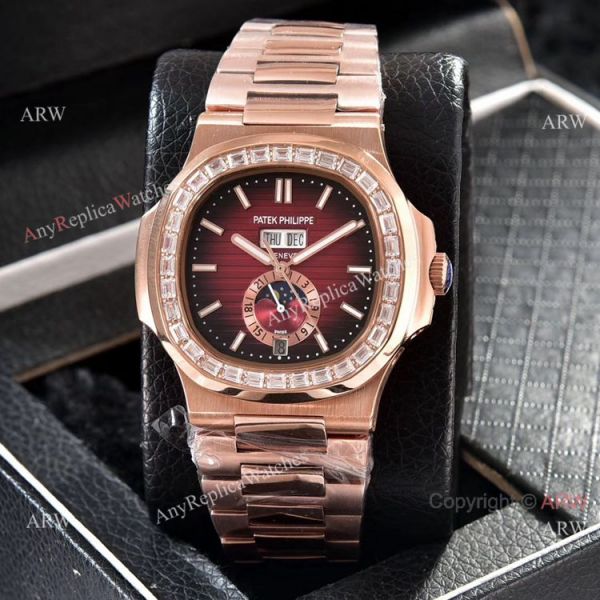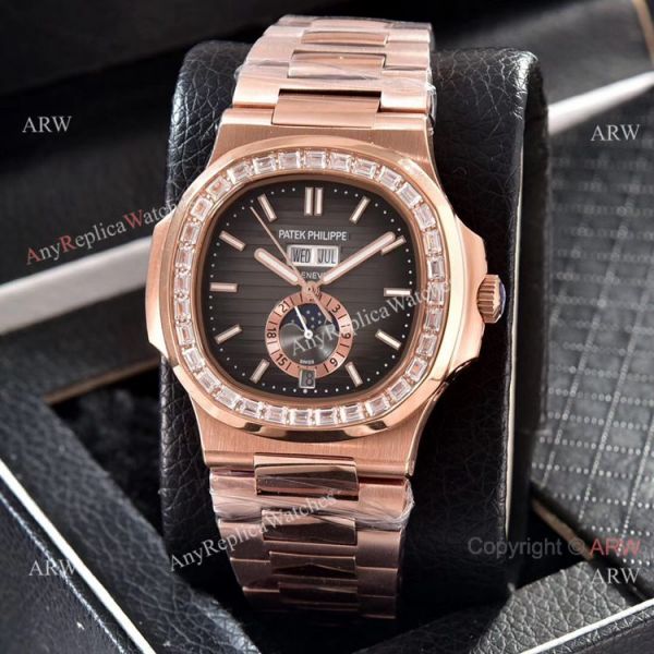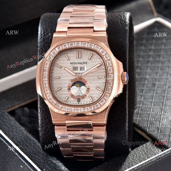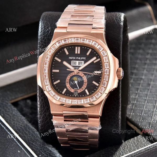 Patek Philippe Nautilus Annual Calendar Copy Watches Rose Gold with Diamond