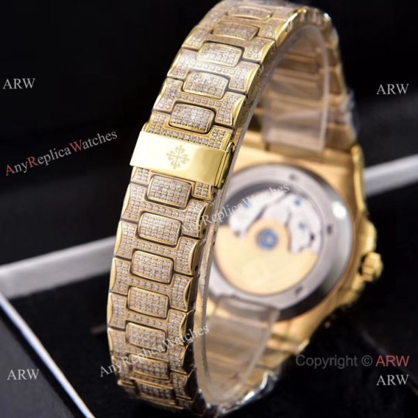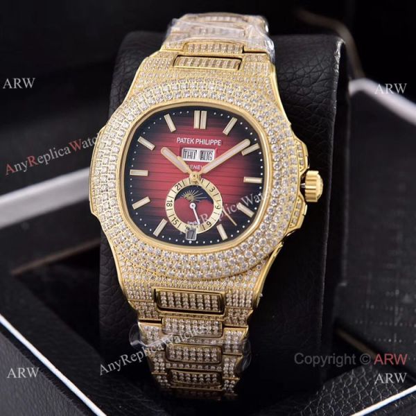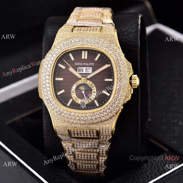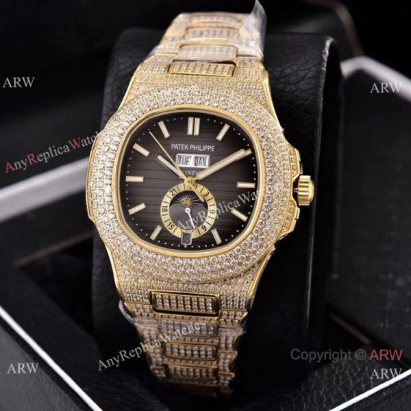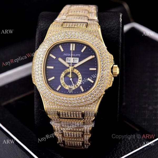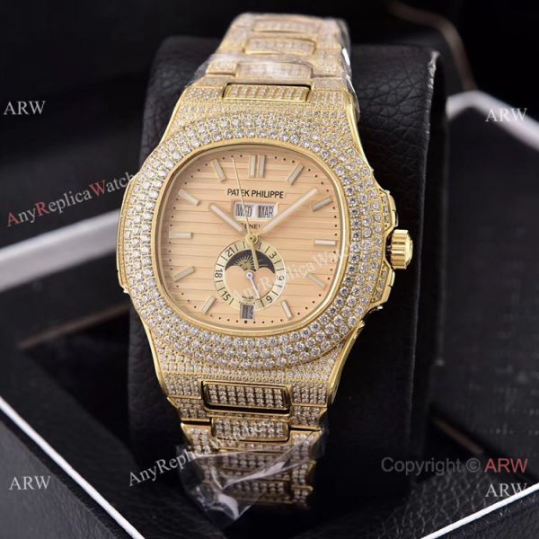 Iced Out Patek Philippe Nautilus Annual Calendar Replica Watches with Moon Phase