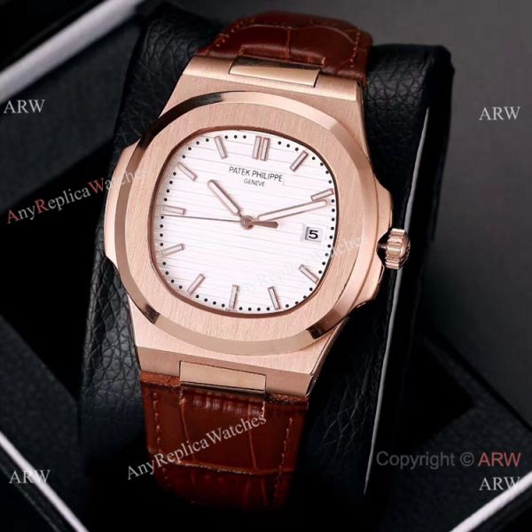Patek Nautilus Rose Gold Leather Strap For Men.