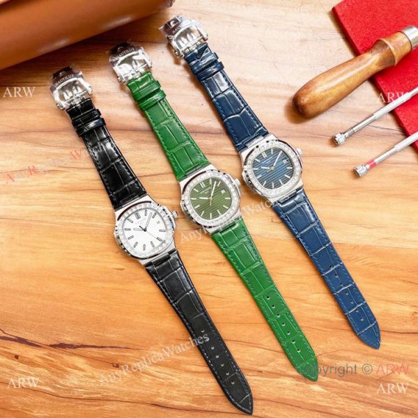 316L Stainless Steel Case - White Dial - New Diamonds Bezel - Black Leather Strap Patek Philippe 5711 Watch