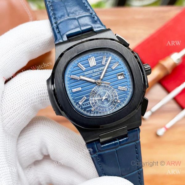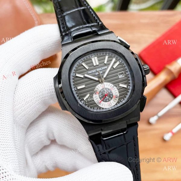 316L Stainless Steel Case coated Black - Black Dial - Black Leather Strap Patek Philippe Watch