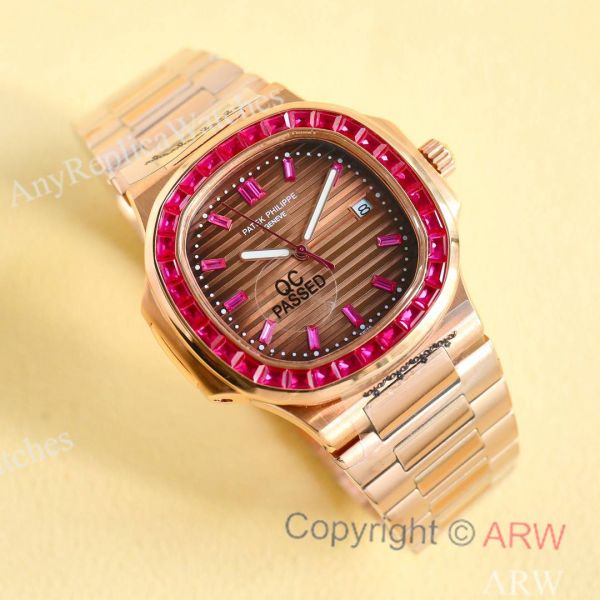 Swiss Quality Patek Philippe Replica Watches Nautilus 5711 Rose Gold Diamond Bezel Watches