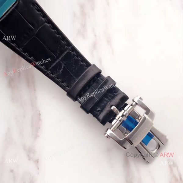 Watch band: Genuine Black Leather Strap with Patek Philippe Stamped Markings on Strap and Clasp