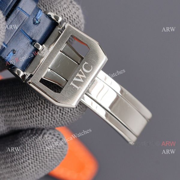High Quality Blue Leather Watch Band with IWC Logo on Buckle