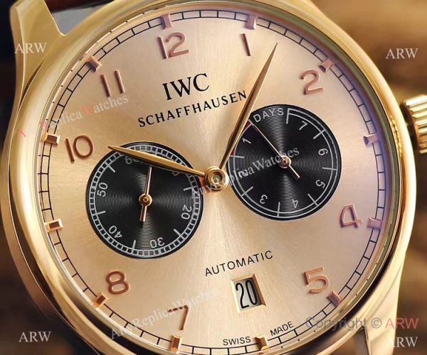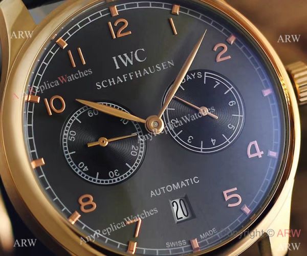 IWC Portuguese Black Face Rose Gold Watch 7 Days Power Reserve