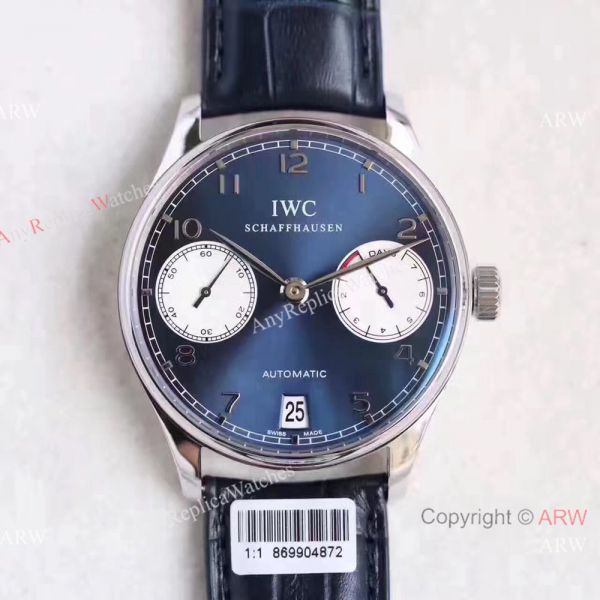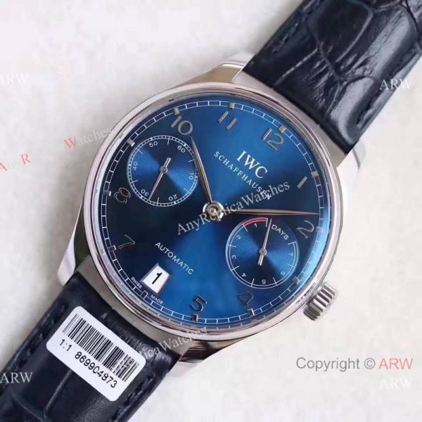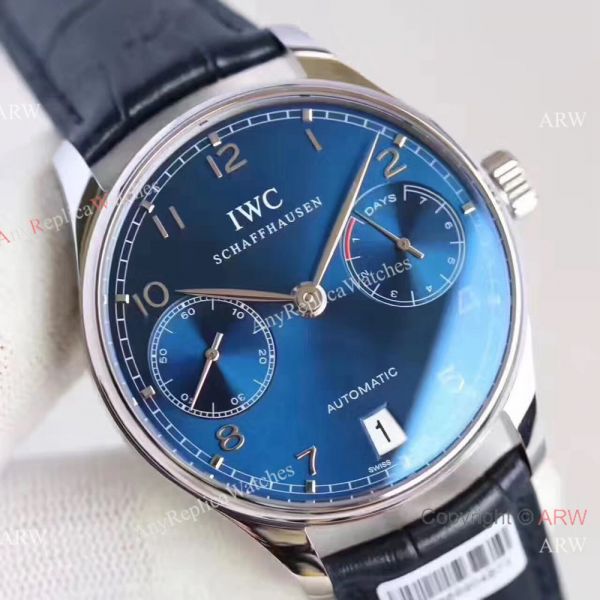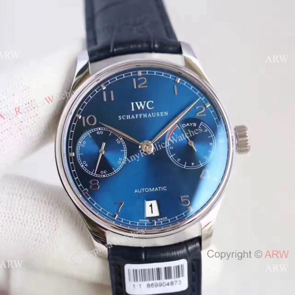 Swiss IWC Portugieser 7 days power reserve Watch Blue Dial w/ folding Clasp