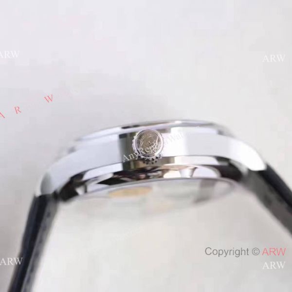 Watch band: High Quality Black Leather Strap with IWC Stamped Markings on Strap and Clasp