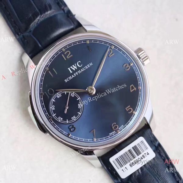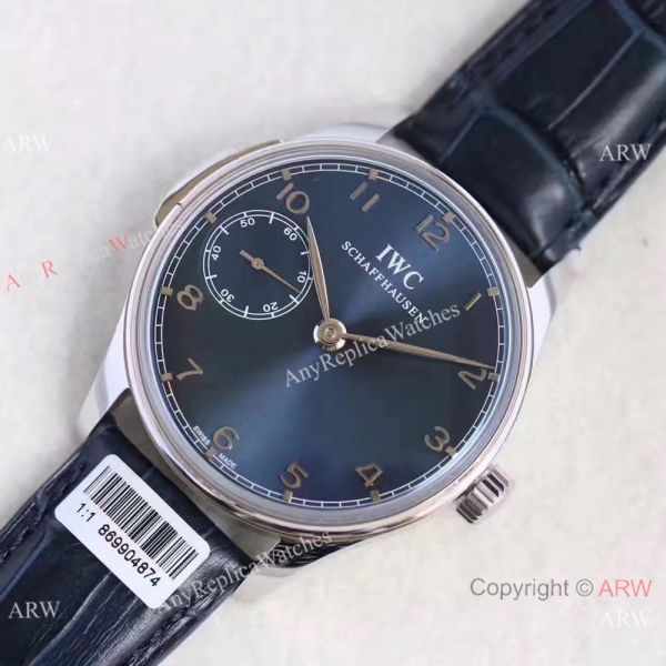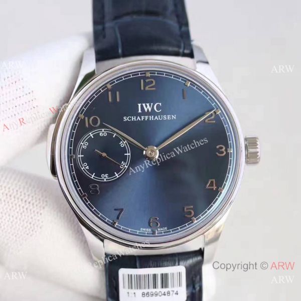 Watch band: High Quality Dark Blue Leather Strap with IWC Stamped Markings on Strap and Clasp