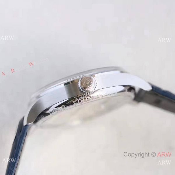 Stainless Steel Silver Watch Case Blue Dial Dark Blue Leather Bracelet