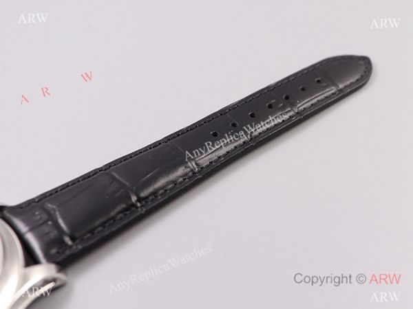 Watchband Material: Shiny black hand-stitched alligator strap with square scales,
