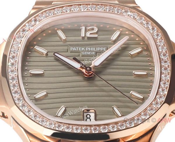 Swiss Cal.324 SC Patek Philippe Nautilus Watches Diamond Bezel Green Dial for Women