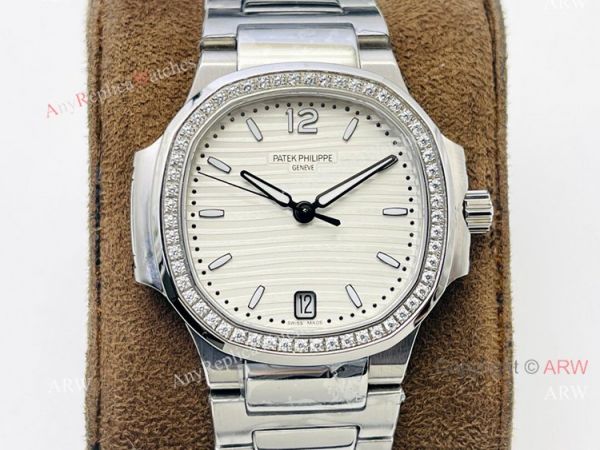 PFF Factory Patek Philippe Ladies-Nautilus 9015 Copy Watch White Dial Diamond Case