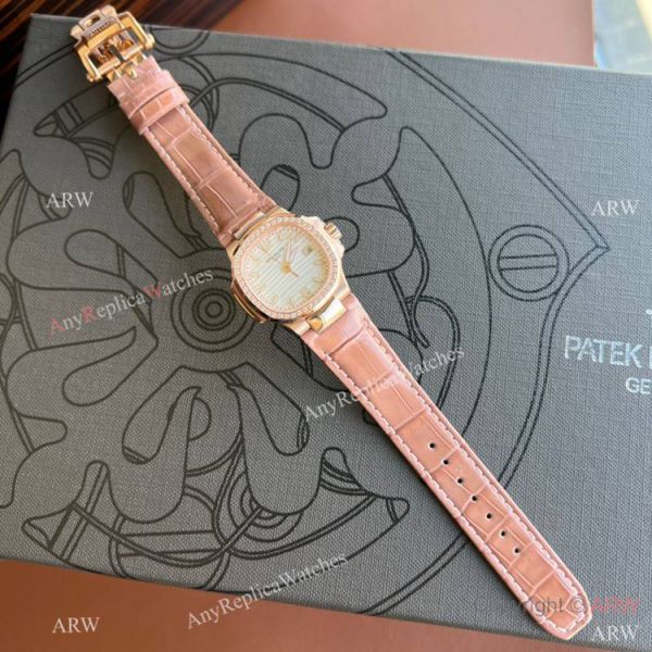 Swiss Quartz Patek Philippe Nautilus Women Replica Watch Pink Leather Strap