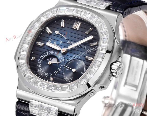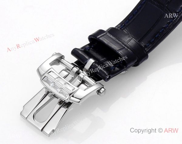 Watchband: High Quality Blue Leather Strap watch bracelet. Buckle with Proper Patek Philippe Engraving.