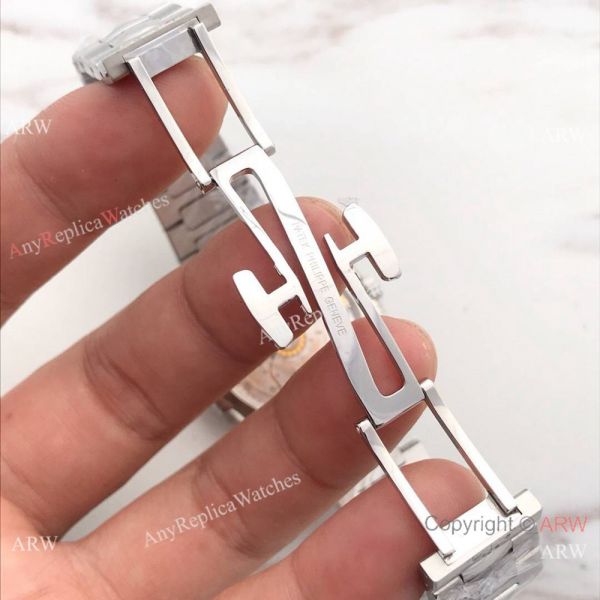 Watch band: Swiss Quality detail finished Stainless Steel Band with Patek Philippe Stamped Markings on Strap and Clasp